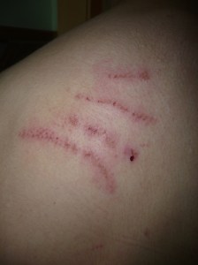I am usually a very controlled person. I am not often provoked, and it is almost impossible to insult me. That said, sometimes I go a little overboard when wrestling. I like to play-fight with partners when it’s not clear who is the more Dominant. I think power struggles are fun. Last night though, I went too far and tore some skin off. I should be more careful!