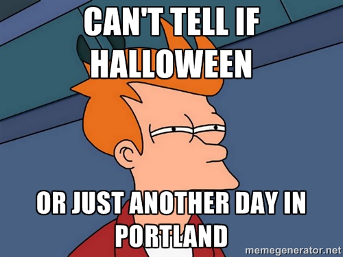 Keep in mind, the Pacific Northwest is a unique place where freaks and geeks and all the weirdos of the night are welcome. I honestly had trouble telling it was Halloween, since it just looked like any old day in Portland.